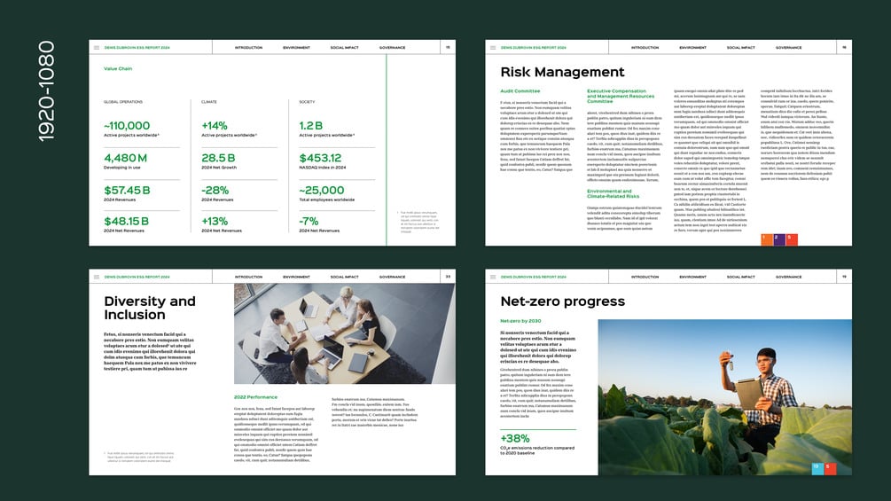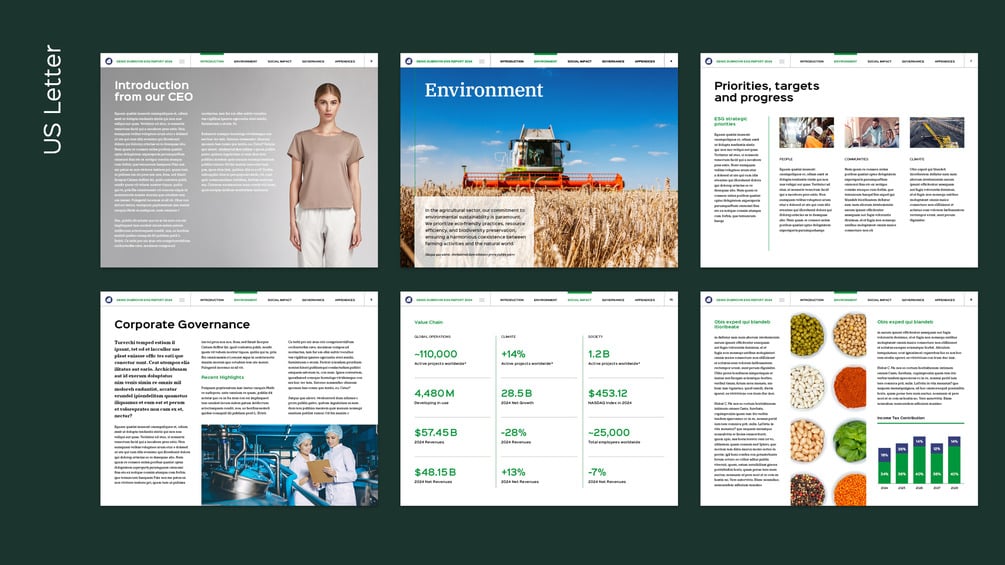 ESG InDesign template in landscape A4, US Letter and even 1920-1080 sizes!