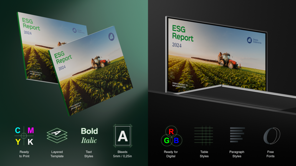 Introducing our cutting-edge ESG report template, designed for InDesign.